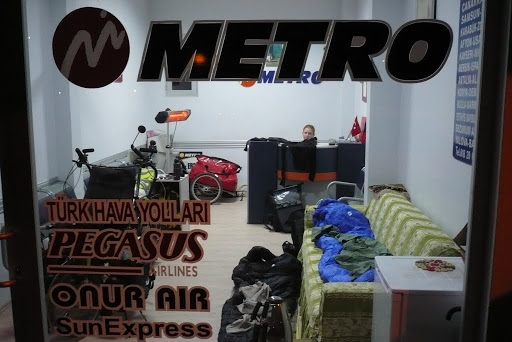 Les conditions d’accueil diminuent (prix du lit augmente et confort baisse) avec un abri sans fenêtre et du vent et pas de toilette! Avec mes problèmes intestinaux, c’est pas super mais comme je commence le traitement d’Omeprazole, ça devrait aller mieux… mais quelque chose cloche quand même dans ce nom d’antibio!